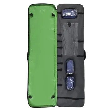 Capa para Prancha com Bolso ideal para proteger sua prancha de resgate, produzida em nylon 600 e zíper reforçado. Decorada com o logo cruz da vida, contém bolso para carregar materiais no lado externo, possui alças para transporte e suporte de metal para pendurar na parede.
